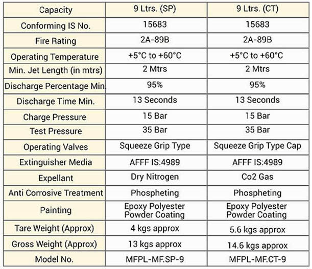Portable Mechanical Foam Stored Pressure & Cartridge Type Fire Extinguishers